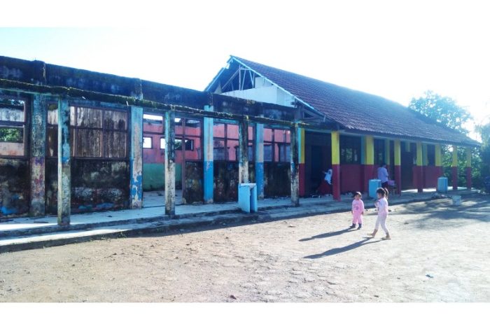 “Dua ruang kelas itu ambruk tahun 2019 lalu karena sudah lapuk. Ditambah waktu itu curah hujan tinggi,” terang seorang guru honorer, Asep Bahagia Hidayat, Jumat (10/6/22).