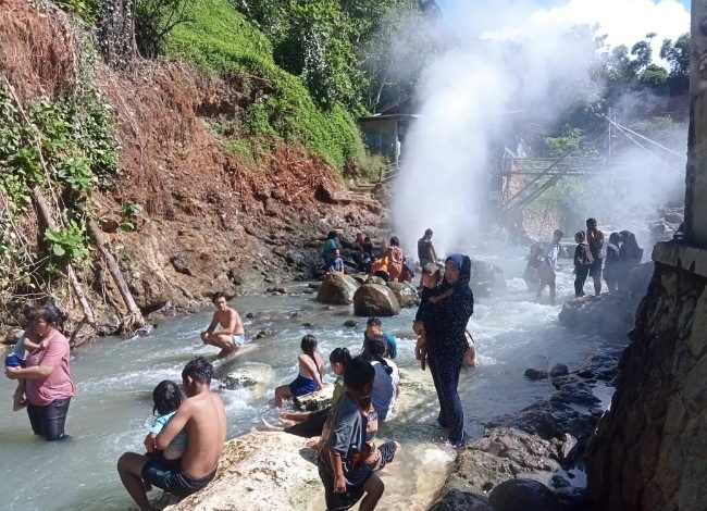 Sukabuminow.com || Geyser Cisolok di Kecamatan Cisolok, Kabupaten Sukabumi, Jawa Barat, yang merupakan salah satu destinasi wisata andalan yang terletak di kawasan Ciletuh Palabuhanratu UNESCO Global Geopark (CPUGG), kembali ramai dikunjungi wisatawan. Keindahan alamnya yang unik dengan semburan air panas alami menjadi daya tarik utama bagi para pengunjung.