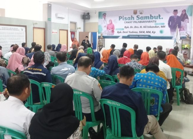 Sukabuminow.com || Camat Palabuhanratu, Deni Yudono, resmi memperkenalkan diri kepada seluruh stakeholder di Kecamatan Palabuhanratu. Perkenalan dilakukan dalam serah terima jabatan dengan camat sebelumnya yang promosi menjadi Kepala DPMPTSP, Ali Iskandar, Jumat (8/3/24).