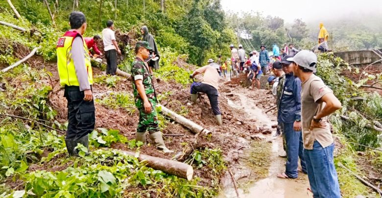 Tidak ada korban jiwa atau kerusakan fisik bangunan dalam kejadian itu. Hanya saja, arus lalu lintas tersendat. Evakuasi material longsor membutuhkan alat berat. Saat ini, tim gabungan TNI, Polri, kecamatan, desa, dan masyarakat tengah melakukan evakuasi sambil menunggu alat berat.