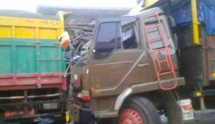 Dua Truk ‘Adu Banteng’ di Cibadak
