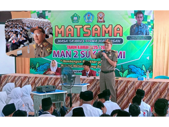 Sukabuminow.com || Momentum Masa Pengenalan Lingkungan Sekolah (MPLS) dimanfaatkan oleh Kasi Ketenteraman dan Ketertiban Umum (Trantibum) Kecamatan Palabuhanratu, Mahbubillah, untuk memberikan pembekalan kepada ratusan pelajar baru MAN 2 Sukabumi, Senin (15/7/25).