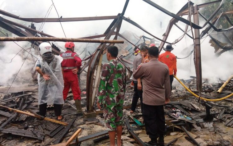 Enam bekas los pasar di lokasi itu hangus akibat kebakaran yang melanda. Lebih memilukan, seorang balita berusia tiga tahun tewas mengenaskan dalam kejadian itu.