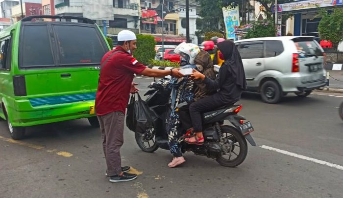 Sukabuminow.com || Pengguna jalan di Jalan A Yani depan Gedung Negara Pendopo Sukabumi, Kota Sukabumi, mendapatkan takjil gratis dari Persatuan Wartawan Indonesia (PWI) Kabupaten Sukabumi, Minggu (2/5/21).