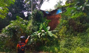 Sukabuminow.com || Tebing setinggi 20 meter dan lebar 10 meter. Di Kampung Cibodas. RT 02/10. Desa Cisarua. Kecamatan Nagrak. Kabupaten Sukabumi. Jawa Barat. Tergerus longsor. Akibatnya satu rumah milik Slamet Ruswandi ikut terancam.