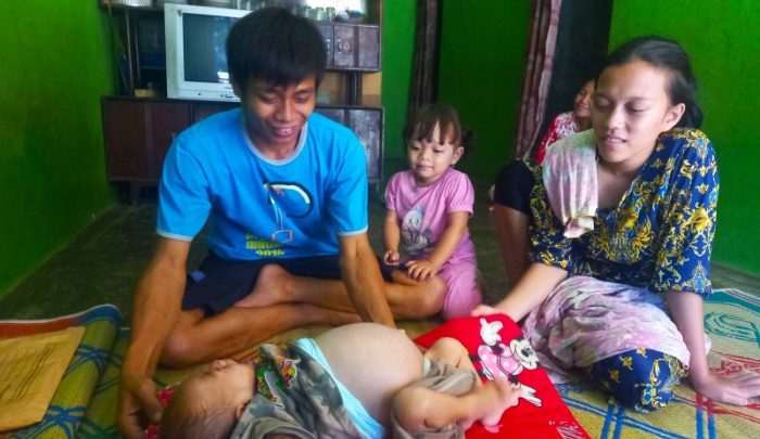 “Waktu usianya 3 bulan, ada benjolan kecil dan kembung di perut sebelah kiri. Awalnya dikira masuk angin. Kemudian dibawa berobat ke bidan. Tapi tidak sembuh-sembuh, malah semakin besar seperti sekarang,” terang Meti saat ditemui di kediamannya, Kamis (16/9/21).