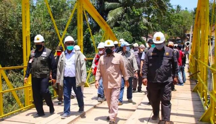 Sukabuminow.com || Pembangunan Jembatan Cibuni di Kecamatan Cidadap yang berbatasan langsung dengan Kabupaten Cianjur, memasuki 70 persen pengerjaan. Hal itu disampaikan Pjs Bupati Sukabumi, Gani Muhamad, saat meninjau langsung pembangunan jembatan sepanjang 120 meter tersebut, Kamis (8/10/20).
