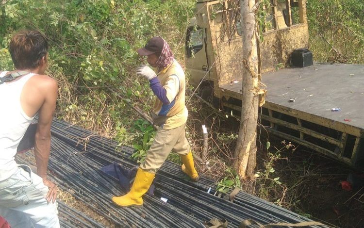 Sukabuminow.com || Sebuah truk pengangkut besi ulir mengalami kecelakaan tunggal. Peristiwa nahas itu terjadi di Tanjakan Dini, Desa Girimukti, Kecamatan Ciemas, Kabupaten Sukabumi, Jawa Barat, Selasa (10/10/23) pagi.