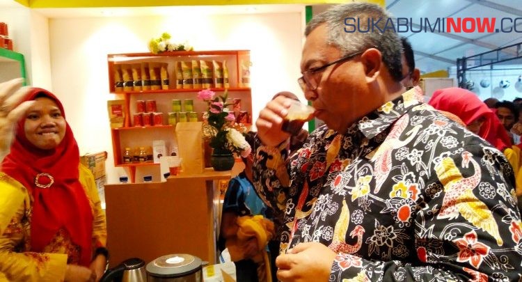 Sukabuminow.com || Bupati Sukabumi : Marwan Hamami. Tampak begitu menikmati. Setiap seruput kopi. Yang disuguhkan stand Dinas Pertanian. Dalam pembukaan Pekan Raya Sukabumi : PRS ke-4 Tahun 2019. Selasa (10/9/19).