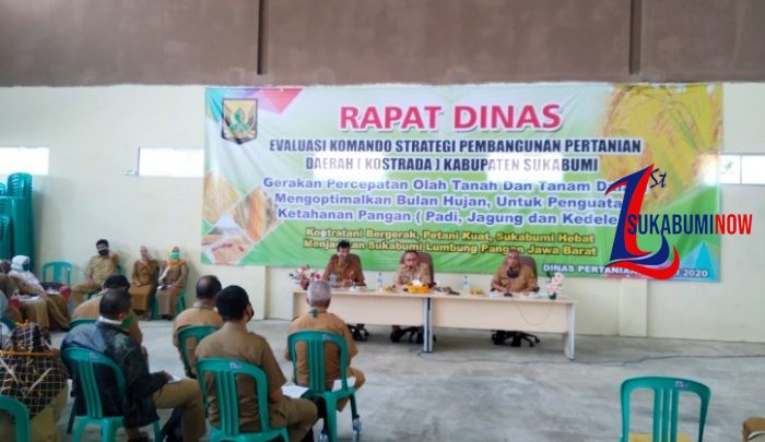 Sukabuminow.com || Lahan sawah di Kabupaten Sukabumi semakin berkurang. Kepala Dinas Pertanian Kabupaten Sukabumi, Sudrajat, mengatakan hal itu dalam Rapat Dinas Evaluasi Komando Strategi Pembangunan Pertanian Daerah (Kostrada) Kabupaten Sukabumi di Gedung Olahraga Dinas Pertanian Kabupaten Sukabumi, Senin (6/7/20).