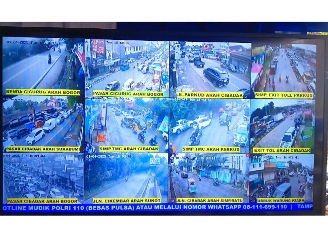 Sukabuminow.com || Arus lalu lintas di sejumlah ruas jalan utama Kabupaten Sukabumi terpantau padat, terutama menjelang dan setelah perayaan Lebaran 2025. Berdasarkan pantauan CCTV Polres Sukabumi yang ditayangkan di layar monitor Pos Pengamanan Ruang Terbuka Hijau (RTH) Citepus, Desa Citepus, Kecamatan Palabuhanratu, Selasa (1/4/25), sejumlah titik mengalami kepadatan lalu lintas.