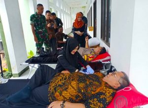 Di tempat sama. Bupati Sukabumi : Marwan Hamami. Terlibat dalam baksos SBSI. Pantauan Sukabuminow. Marwan bersama Kapolres Sukabumi. Dan Danyon 310/Kidang Kancana : Letkol Inf. Ageng Wahyu Romadhon. Mendonorkan darahnya.