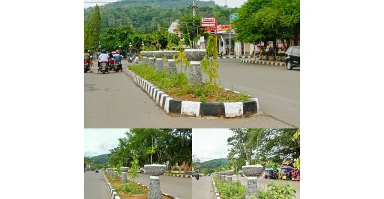 Lukman mengatakan, di bagian tengah median jalan tersebut berdiri kokoh 21 pot bunga yang terbagi dalam tiga ‘potong’ pembatas jalan tersebut.