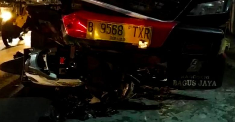Ujang (32). Saksi mata mengatakan. Motor Mio. F 5621 TG. Masuk ke kolong box. Akibat kerasnya tabrakan.