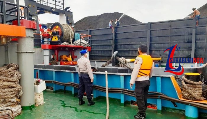 Sukabuminow.com || Kepolisian Air dan Udara Polres Sukabumi memeriksa sebuah kapal tongkang yang mengangkut batu bara tujuan PLTU Jawa Barat 2 Palabuhanratu, Jumat (3/7/20).