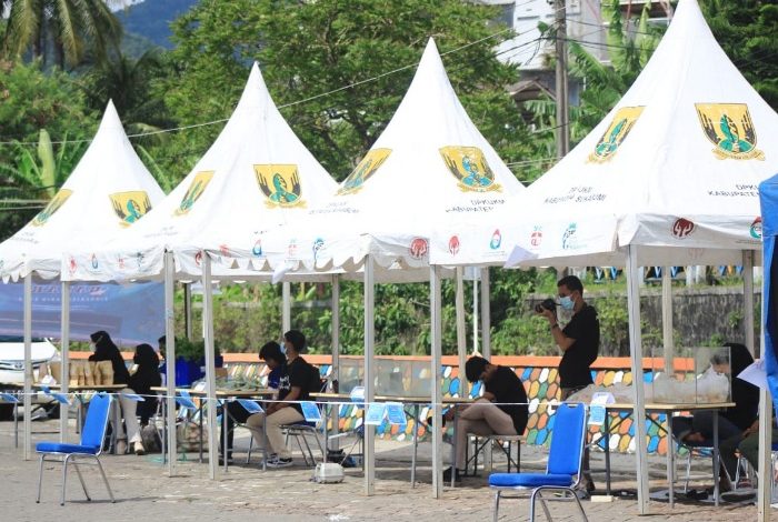 Sukabuminow.com || Mahasiswa Perikanan Universitas Muhammadiyah Sukabumi menggelar bazar di area lapang Pelabuhan Perikanan Nusantara Palabuhanratu (PPNP) Kabupaten Sukabumi, Rabu (6/4/22). Bazar tersebut untuk memperingati hari Nelayan yang diperingati tiap tanggal 6 April.