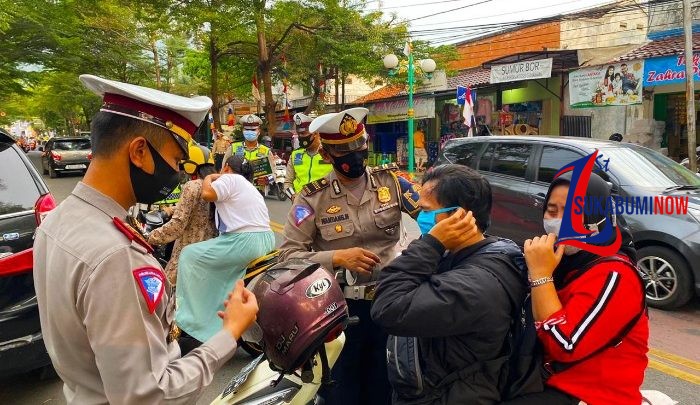“Pak Kapolres memerintahkan anggotanya untuk membagikan ribuan masker kepada masyarakat. Tujuannya agar masyarakat tetap waspada dengan pandemi Covid-19 yang masih terus meningkat kasusnya,” tutur Kasatlantas Polres Sukabumi, AKP Riki FM.