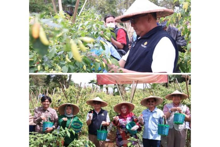 Sukabuminow.com || Program closed loop tanaman cabai rawit merah di Kampung Lemahduhur, Desa Margaluyu, Kecamatan Sukaraja, Kabupaten Sukabumi, telah memasuki panen perdana. Lebih spesial, panen tersebut dilakukan bersama Wakil Bupati Sukabumi, Iyos Somantri, dan Kementerian Koordinator Perekonomian RI, Selasa (17/5/22).