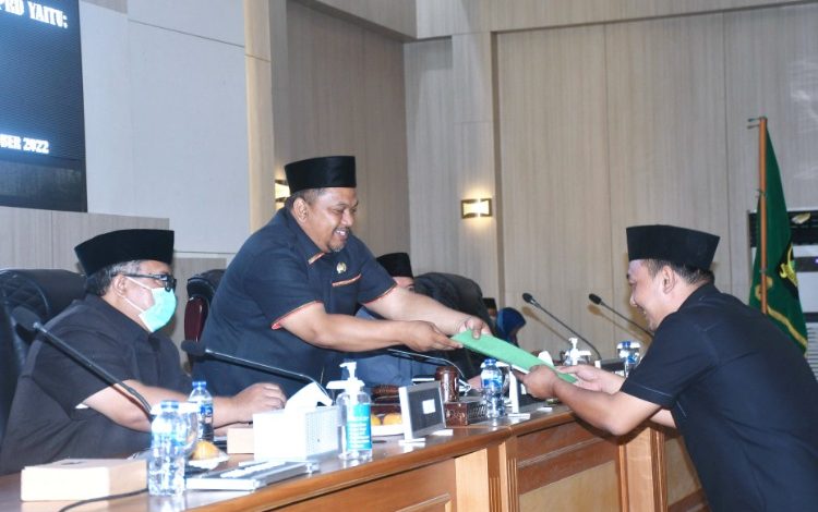 “Secara umum ada beberapa catatan, saran, pendapat, koreksi, dan pertanyaan yang ditujukan kepada Bupati dan Pemerintah Daerah mengenai Raperda ini melalui pandangan umum fraksi-fraksi,” tutur Budi Azhar.