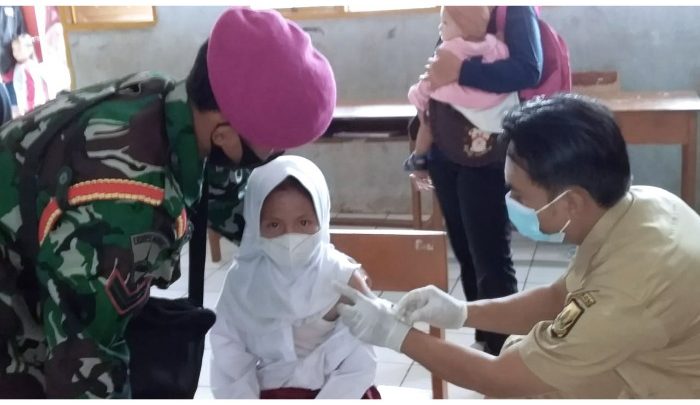 Sukabuminow.com || Percepatan vaksinasi Covid-19 untuk anak usia 6 hingga 11 tahun kembali dilakukan Puslatpur Marinir-6 Antralina, Jampangtengah, Kabupaten Sukabumi. Kali ini, sasarannya adalah para pelajar SD Negeri 01 Bojong Jengkol, Jampangtengah.