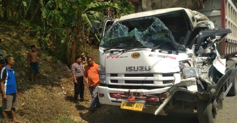 Mobil Isuzu Dump Truck. B 9448 KYV. Yang mengangkut semen. Dikemudikan Jumawan (47). Warga Kampung Malabar Rt 001/002. Desa Malabar. Kecamatan Cibadak. Kabupaten Lebak. Menabrak mobil yang ada di depannya.