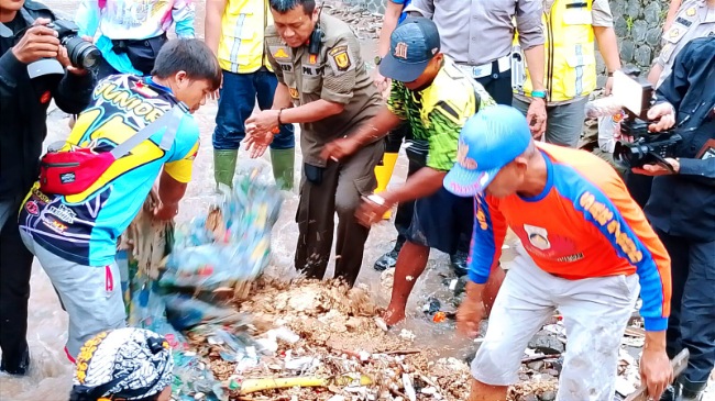 Satpol PP Sukabumi dan Gubernur Jabar Bersihkan Sungai Cipalabuhan Pascabanjir