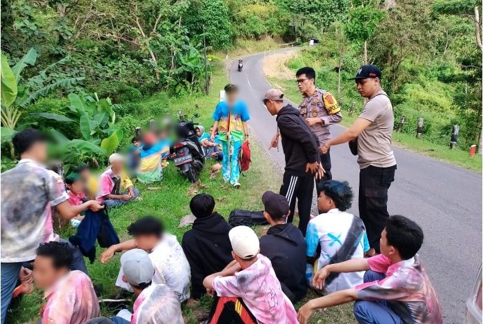 Sukabuminow.com || Puluhan pelajar SMK diamankan polisi di Jalan Raya Kampung Ranca Genjer, Desa Mekarsakti, Kecamatan Ciemas, Kabupaten Sukabumi, Rabu (1/6/22).