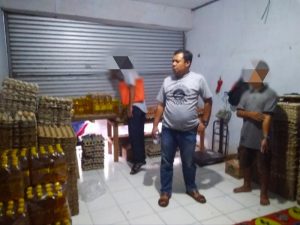 PETUGAS menemukan banyak minyak goreng dalam kemasan botol di dalam ruangan rumah yang disidak. Foto : Sukabuminow