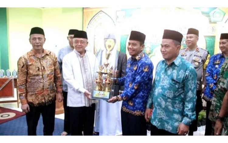 Sukabuminow.com || Kecamatan Cisaat, Kabupaten Sukabumi, sukses meraih juara umum Seleksi Tilawatil Qur’an (STQ) XVIII tingkat Kabupaten Sukabumi tahun 2023. Piala diserahkan Wakil Bupati Sukabumi, Iyos Somantri, kepada Camat Cisaat, Yudi Mulyadi, dalam penutupan kegiatan, Jumat (17/2/23).