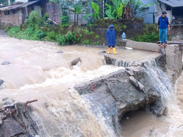 Sungai Meluap di Sukabumi, Irigasi Baru Rusak dan Jalan Terendam