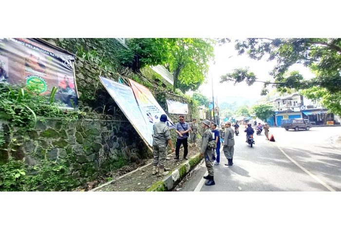 Sukabuminow.com || Satpol PP Kabupaten Sukabumi menertibkan sejumlah baligo dan spanduk yang lusuh di wilayah Palabuhanratu, Jumat (17/6/22).